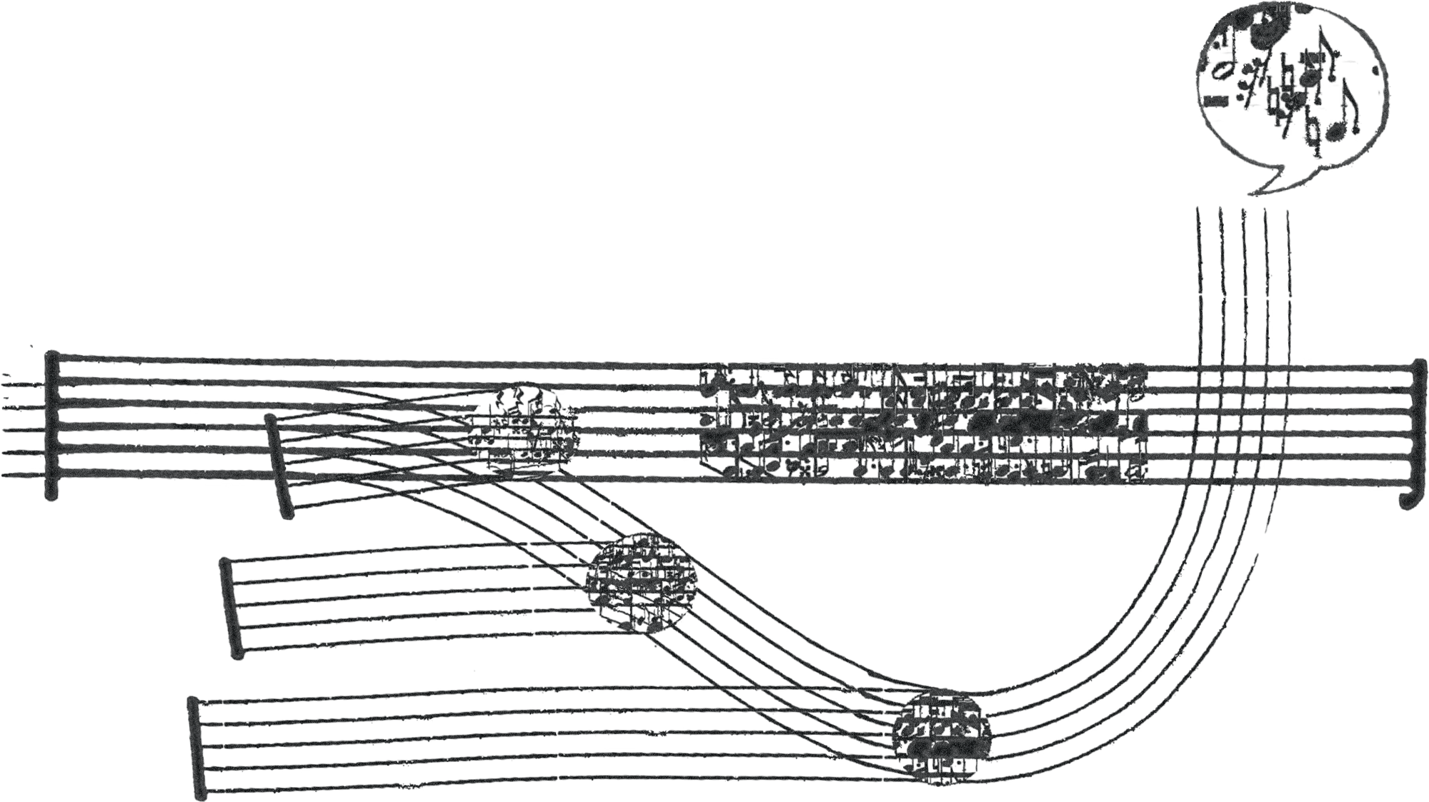 Graphic notation of Manifestations in the Shadow of an Uncertain Land by Robert Aiki Aubrey Lowe